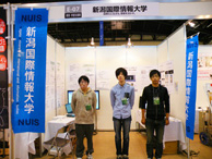 平成25年10月24日(木)、25日(金)の2日間、新潟市中央区の新潟市産業振興センターにて開催されました「新潟国際ビジネスメッセ2013」におきまして、本学情報システム学科の高木 義和 教授、中田 豊久 講師および同学科の学生が展示を行いました。「新潟国際ビジネスメッセ」では毎年、ビジネスの拡大につながる最新の技術やサービスが、様々な企業や大学から展示されます。