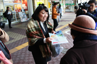 委嘱式当日は、新潟県警察本部より委嘱状がそれぞれの学生に交付され、研修会の後、新潟駅万代広場にて広報啓発活動を行いました。参加した学生は、通行人に対しチラシを配布しながらサイバー犯罪被害の防止について呼びかけていました。