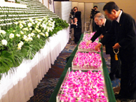 本学創設者 小澤 辰男 学院長の「お別れの会」が平成25年12月3日(火)新潟市中央区のANAクラウンプラザホテル新潟を会場に開催されました。当日は好天にも恵まれ、約1,000人の方々が弔問に訪れ献花をし、別れを惜しみました。会場には、故人の海軍時代の写真から政治家としての活躍の姿や、大学設立時の懐かしいビデオも流され、幅広い活躍風景に参列した皆様も見入っていました。ご参列いただいた皆様、大変ありがとうございました。