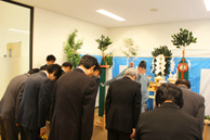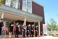 平成26年9月19日(金)本校(みずき野キャンパス)にて、「学生会館新築・学生食堂増改築 竣工式」および「開館式」を挙行しました。開式に先立ち、神事が執り行われ、引き続き、学生会館ラウンジにて、星野理事長、平山学長をはじめとする大学関係者および工事関係者ら約50名が参列し、学生会館正面入り口にてテープカットが行われました。その後、星野理事長から「この学生会館が、学生にとっての“ふれあいの場”となることを願っている。近隣の方々にもおおいにこの学生会館を利用していただき、学生が学生同士だけでなく、さまざまな人たちと気軽に語り合える場となってほしい。」と挨拶がありました。