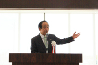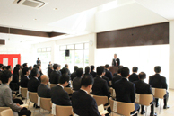 終わりに、平山学長が「会館名のMELFは、永遠の友をここでつくろう、という意味がこめられている。ここで、学生が集い、その学生が年をとっても昔のように友としてつきあえる場となることを願っている。また、在学生だけでなく、OBや地域の人々にも愛される施設になってほしい。」と述べました。