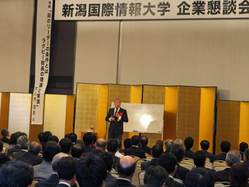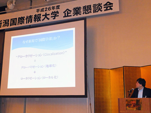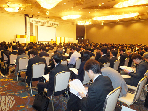 平成26年11月19日(水)新潟市中央区のANAクラウンプラザホテル新潟を会場に「平成26年度企業懇談会」を開催しました。この会は、本学教職員及び就職指導委員が企業・団体の代表及び採用担当者と意見交換し、就職に関する情報の収集に役立てるとともに、日頃採用活動にご協力いただいている企業の方へ感謝の意を表することを目的として毎年行っています。19回目の今年度は、291社、395名の皆様にご参加いただきました。
