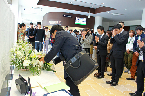 お別れ会当日は、平山学長の挨拶から始まり、越智 教授による小澤先生の経過説明、ゼミ学生からお別れ言葉が述べられた後、参列者全員による献杯を行い、小澤先生との別れを惜しみました。心よりご冥福をお祈りいたします。