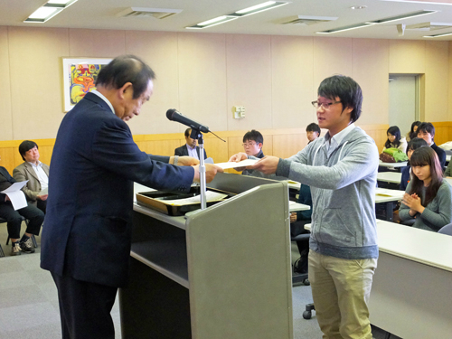 平成26年度資格取得奨励奨学金授与式(後期)を開催しました