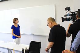 NegiccoのKaedeさんがリポーター、BSN特別番組「新潟の大学・短大そこが知りたい!2015」の撮影が本学で行なわれました