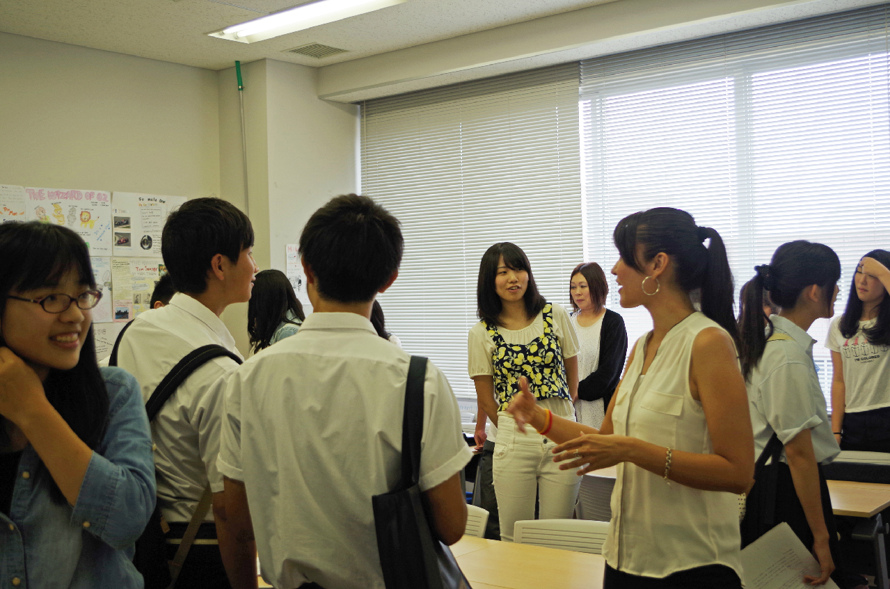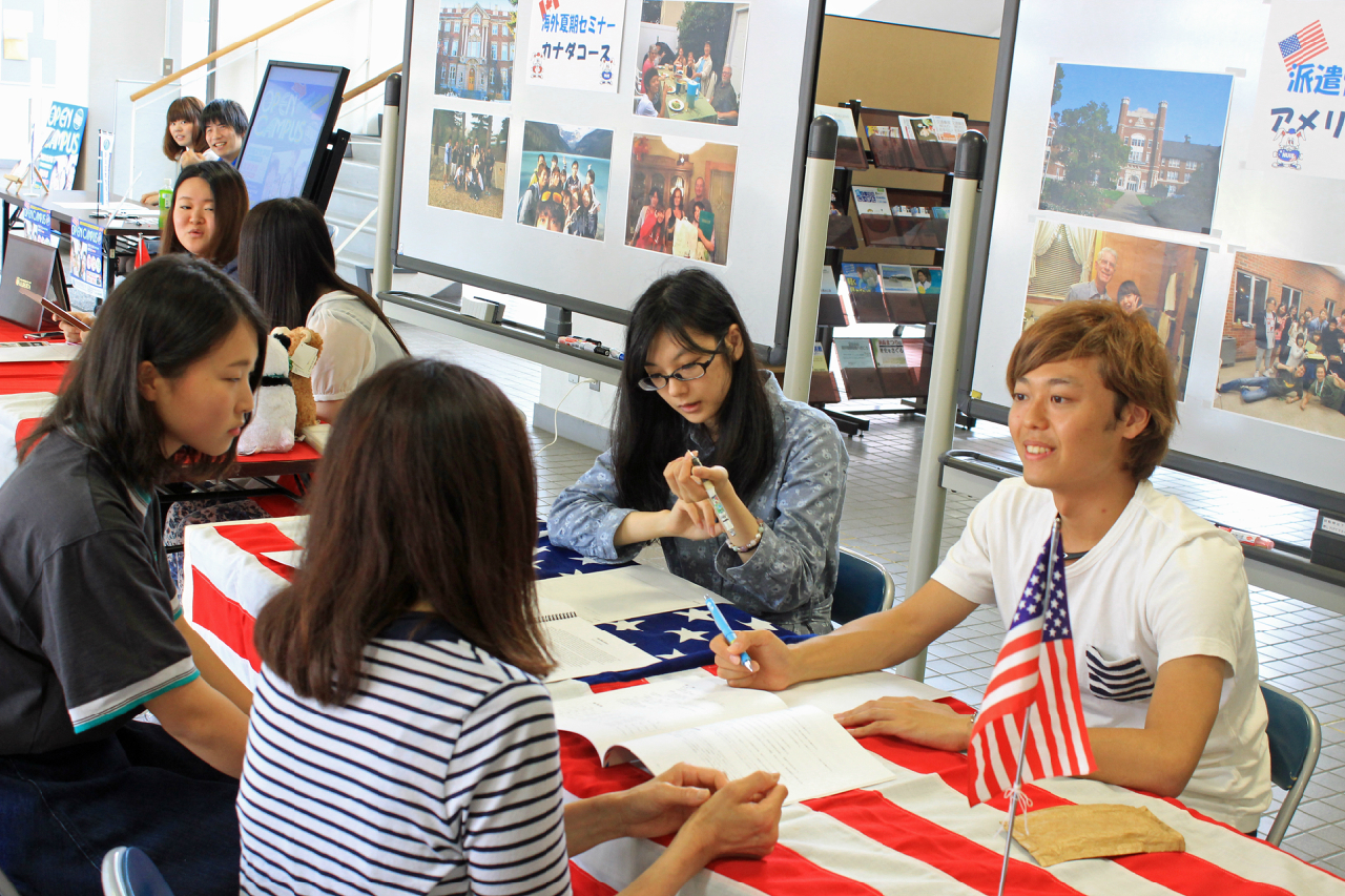 その他、入学試験の説明会、保護者対象説明会、参加者が気軽に立ち寄れる入試・進学相談コーナーが設置され、入試情報や奨学金等について、参加者は熱心に質問をしていました。また、昨年度好評だった、就職個別相談をアットホームなカフェスタイルで行なう「キャリアカフェ」がオープンし、企業に内定した学生が、参加者を対応して就職活動に関する経験談や学生生活のアドバイス等を対応しました。海外留学相談コーナーでは、本学の特色の1つである派遣留学制度・夏期セミナー(アメリカ・ロシア・中国・韓国・カナダ)で実際に留学を体験した学生から、制度の特色や海外生活の体験談が語られました。さらに、公認団体(部活・サークル)紹介では、軽音部・ダンス部がパフォーマンスを披露し参加者を盛り上げていたほか、写真部による作品の展示が行われました。そして、本学のマスコットキャラクターのナビットも登場し、参加者をそれぞれ楽しませていました。