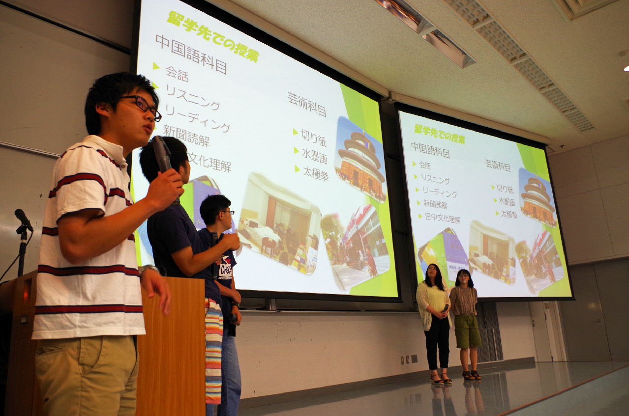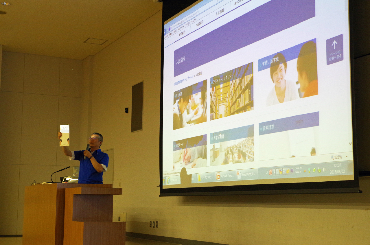 その他、入学試験の説明会、保護者対象説明会、参加者が気軽に立ち寄れる入試・進学の個別相談コーナーが設置され、入試情報や奨学金等について、参加者は熱心に質問をしていました。海外留学相談コーナーでは、本学の特色の1つである派遣留学制度・夏期セミナー(アメリカ・ロシア・中国・韓国・カナダ)で実際に留学を体験した学生から、制度の特色や海外生活の体験談が語られました。