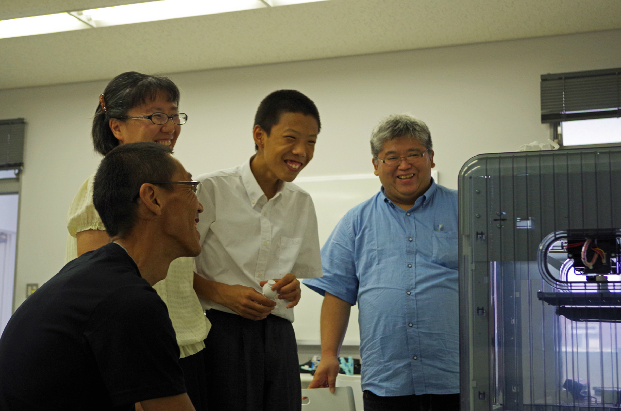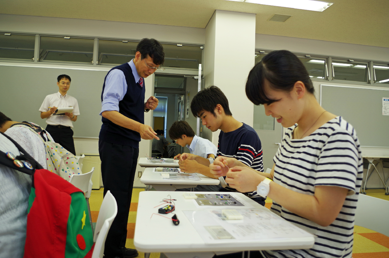 また、今年度新設された「実験体感コーナー」では、3Dプリンタで実際に模型を作成したり、LEDで光送信機を制作し光通信を行うなど参加型のプログラムで大変にぎわっていました。そして、本学のマスコットキャラクターのナビットも7月に引き続き登場し、参加者をそれぞれ楽しませていました。
