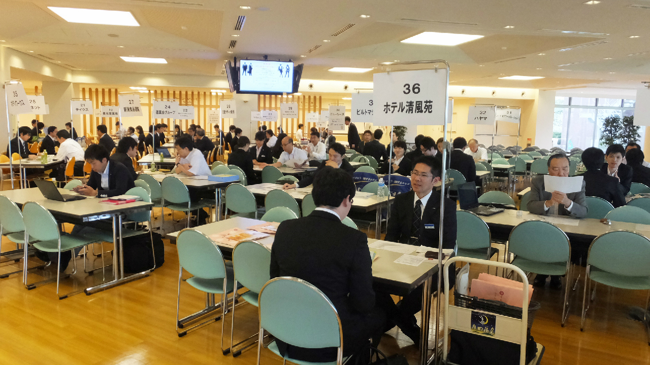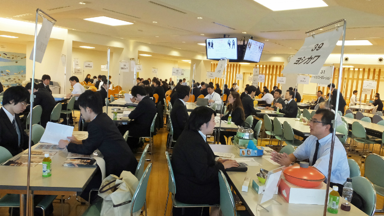 平成27年9月17日(木) 本校(みずき野キャンパス)にて、就職活動中の4年次生を対象とした「第4回学内合同企業説明会」を実施しました。多くの企業で10月の内定式が行われますが、現在内定式に向けて積極的な採用活動が行われています。県内外より38社の企業様にお越しいただき、仕事内容や今後の説明会・選考スケジュールについてご説明いただきました。