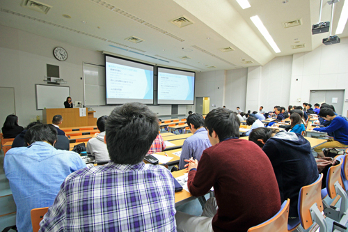 平成27年10月28日(水)本校(みずき野キャンパス)を会場に、3年次生を対象とした「就職ガイダンス」にて森本 恵理子 氏による特別講演が行われました。森本氏は本学卒業生(1期生)で現在、小千谷市議会議員としてご活躍されています。「わたしの生き方」という演題でご講演いただき、大学時代の経験談や市議会議員を目指した理由、小千谷市で力を入れている取り組みなど貴重なお話に参加した在学生は熱心に耳を傾けていました。講演後の質問コーナーでは、在学生から就職活動や恋愛、人間関係についてなど様々な質問があがり、終始和やかな雰囲気の中、森本氏より的確なアドバイスを頂いていたようでした。森本 様、お忙しいところ貴重なお時間をありがとうございました。