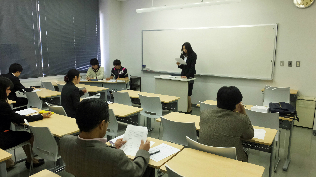 平成27年11月7日(土)、本校(みずき野キャンパス)にて、情報文化学部 情報文化学科4年生による卒業論文中間発表会が開催されました。本学科での学修の集大成となる卒業研究について、「言語・文化」、「平和学・社会問題」、「教育・歴史・国際理解」などのテーマごとに計10会場に分かれ発表が行われました。