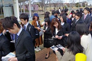 式典終了後、会場の外では記念撮影やクラブ活動の熱心な勧誘の光景が見られました。
