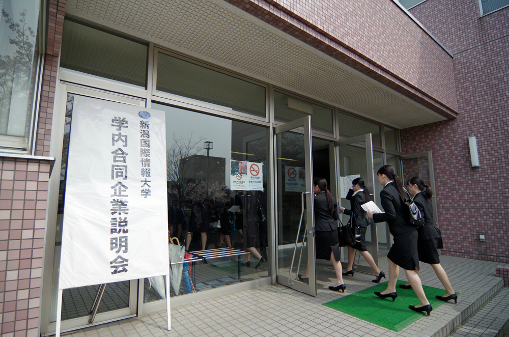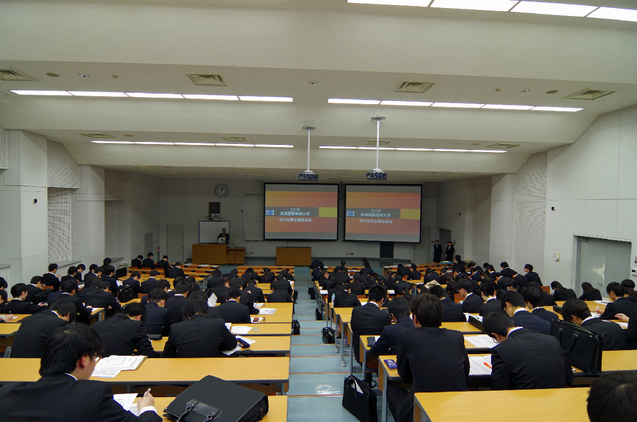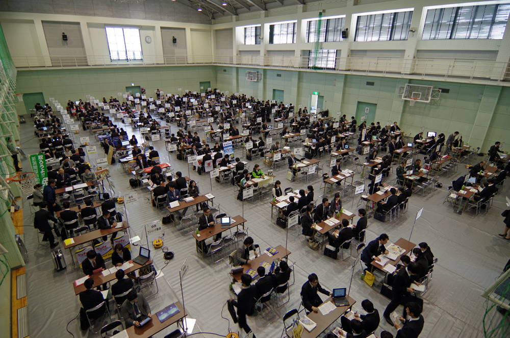 平成28年4月16日(土)、17日(日)の両日、本校(みずき野キャンパス)体育館にて「平成28年度学内合同企業説明会」を開催しました。就職日程が変更となった中、県内外より合計213社(2日間)の団体・企業人事担当の方々にご参加いただき、本学学生は215名以上が参加しました。