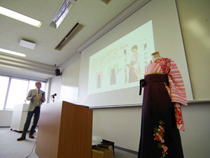 講師に戸松 茂雄 氏(株式会社とまつ衣裳店 代表取締役)をお招きし、『学生と生み出すカワイイキモノプロジェクト』という演題でご講話をいただきました。