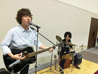 引き続き行われた懇親会では、平山 学長をはじめ教職員も多数参加し、懐かしい先生方や友人、先輩、後輩との思い出話に花を咲かせました。会の途中には、一昨年本学を卒業したアコースティックデュオ「ぽこびー」のライブも披露され、会場は大いに盛りあがりました。
