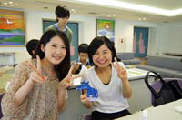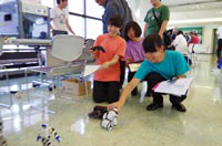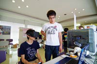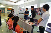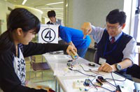 錯視を体験できるペーパークラフト作成、ロボット等の操作や光通信、英会話の授業などの体験ブースが人気を博していたほか、人間工学を応用し改良した製品を体験するブースでは、学生のアイディアによって、私たちの身の回りにあるものが、劇的に使いやすくなることに感嘆の声をあがっていました。