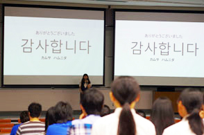 小林 満男 情報文化学部長の挨拶に始まり、教員及び学生による学部・学科説明が行われた後、模擬講義や実習体験が行われました。語学体験(英語・ロシア語・中国語・韓国語)、模擬講義「ビッグデータって何?」「『異文化理解』は平和のグローバル化をめざす!」、コンピュータ実習など、合計8の講義や実習を開講し、参加者はそれぞれ関心のあるものを選択して大学の講義を体験していました。