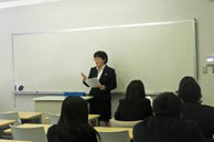 平成28年11月12日(土)、本校(みずき野キャンパス)にて、情報文化学部 情報文化学科4年生による卒業論文中間発表会が開催されました。全体での開会式後、本学科での学修の集大成となる卒業研究について、「言語・文化」、「平和学・社会問題」、「教育・歴史・国際理解」などのテーマごとに計10会場に分かれ発表が行われました。