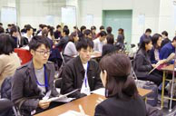 当日は県内外より2日間で214社の企業・団体人事ご担当者様にご参加いただきました。学生は対象者の約9割にあたる267名が参加し、企業・団体様を4グループに分けてのブース形式で、一定の時間内で自己紹介および交流を図りました。