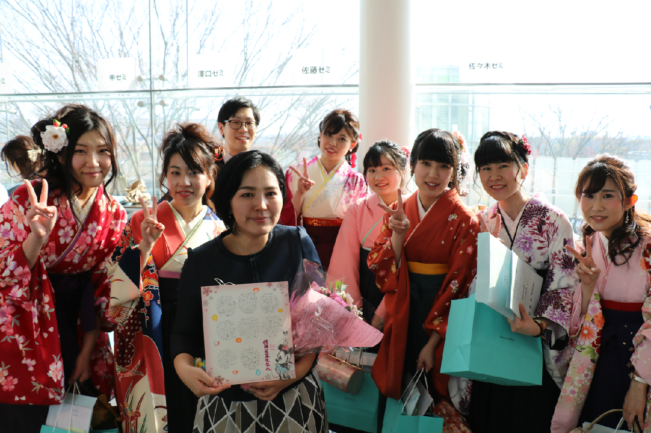 卒業生代表の情報文化学科・堀芳昭さんが「留学して国際情勢に関心を持ち語学を磨き、充実の4年間でした。法律学ゼミで裁判員制度をテーマにして広い視野を知りました。この経験を社会で生かしたい」と晴れやかに答辞を述べました。