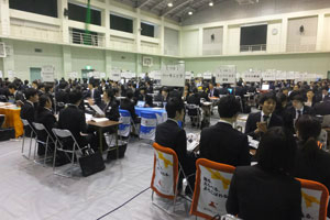 平成29年4月8日(土)、9日(日)の両日、本校(みずき野キャンパス)体育館にて「平成29年度学内合同企業説明会」を開催しました。県内外より合計225社(2日間)の団体・企業人事担当の方々にご参加いただき、本学学生は両日合わせて420名以上が参加しました。