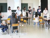 平成24年9月7日(金)新潟県立翠江高等学校にて、国際交流インストラクター(学生7名)が国際理解ワークショップを実施しました。今回のテーマは『女はズボン!?男はスカート!?-身近な異文化理解-』で、高校生1~4年生を対象に行われました。ワークショップ中は、生徒達から鋭い意見や楽しい発言がたくさんあり、終始和やかな雰囲気でした。