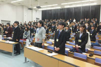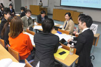 この講座はキャリアコンサルタントや就職支援の現場で活躍する社会人、卒業生、4年次生の方々の力を借りながらさまざまな面接パターンを体験する講座で、平成17年から実施しています。今回は、3年次生172名が受講しました。