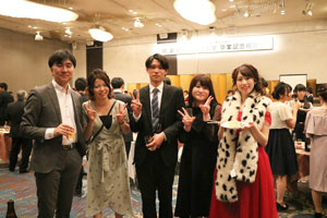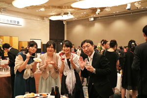 引き続き夕方には、恒例の祝賀会がANAクラウンプラザホテル新潟で開かれ、晴れやかな笑顔いっぱいの卒業生と教職員が乾杯や記念撮影を繰り返しながら、別れを惜しみ互いの健闘を誓い合っていました。