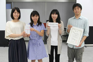 平成30年8月26日(日)に新潟市役所にて新潟市・大学連携新潟協議会主催の「第5回キャンパスからの提言フォーラム」が開催されました。本学からは4年の田中祐多さん(藤田美幸ゼミ)が参加し、新潟県立大学の学生さんとの合同グループ「就職頑張り隊」が優秀賞を受賞しました。おめでとうございます。