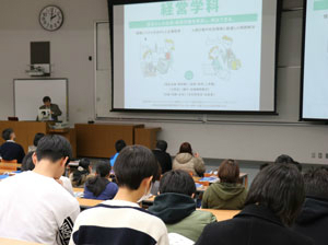 また、特別企画として、駿台教育研究所の講師をお招きし「一般入試対策講座」を開講しました。一般入学試験(前期・後期)に必要な「国語」、「英語」、「数学」について、解き方や勉強方法のアドバイス、合格に向けた秘訣をご指導いただきました。