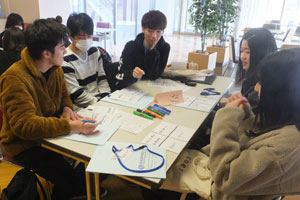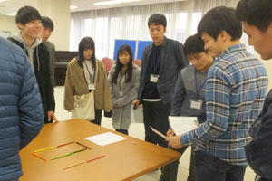 当日は181名が参加し、午前の部は38グループに分かれて「自己紹介」、「簡単なゲーム等」を行いました。先進国の肥満と途上国の飢餓の問題を同時に改善しようとするTFTランチ(TABLE FOR TWO International)を体験後、午後の部は学部ごとに分かれて「大学の学びについてのショートレクチャー」、「グループワーク」、「模擬授業」などを行いました。