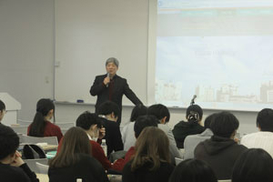 全 鎮浩教授は、21世紀の日韓関係は両国の若い世代がそれぞれの特徴を理解し、共に歩いていく仲間として協力し、価値を共有し、相互理解を図ることが重要であるという視点から論じていただきました。この特別講義は、受講学生はじめ、学長、教職員、光云大学からの留学生や光云大学の留学経験のある学生など多数が聴講し、両国について理解を深めました。
