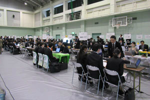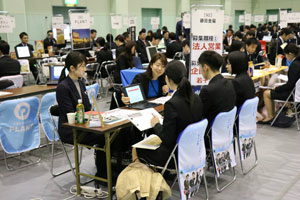 平成31年3月14日(木)本校(みずき野キャンパス)体育館にて「平成30年度学内合同企業説明会」を開催いたしました。県内外より251社の団体・企業人事担当の方々にご参加いただき、本学学生240名が参加いたしました。