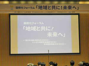 平成31年4月26日(金)新潟日報メディアシップにて、国際化フォーラム「地域と共に!未来へ」を本学(NUIS)、環日本海経済研究所(ERINA)、にいがた産業創造機構(NICO)の3団体主催で開催しました。当日は、一般・関係者を含め約230名と多くの方が来場されました。