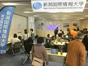 令和元年5月3日から5日までの3日間開催された「信濃川感謝祭2019 やすらぎ堤川まつり」に参加し、本学は、経営情報学部 情報システム学科 河原 和好 准教授と中田 豊久 講師を中心に、NST様社屋内3階特設ブースに、「プログラミング体験コーナー」を出展いたしました。