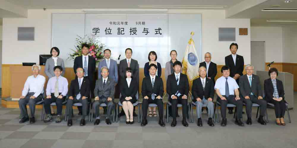 本日、本年度の9月卒業式が本校大会議室で行われ、卒業生5名に対し野崎茂学長から学位記を授与されました。