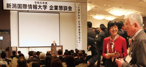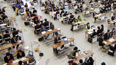 毎年数百社の企業が参加されます。理事長、学長、学部長、教職員、キャリア支援員などが企業の人事担当者と積極的に意見交換し、情報収集をします。意見交換した情報を活用し、就職活動をサポートしています。