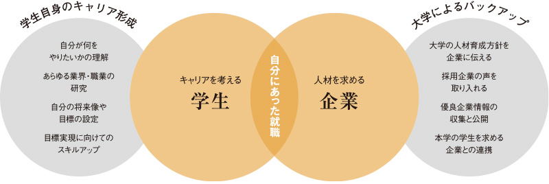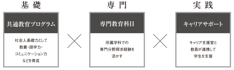 段階を踏んだキャリア教育をセミナーや授業にも取り入れながら、学生が卒業と同時に納得のいくキャリアの第一歩を踏み出すことができるようにサポートしています。