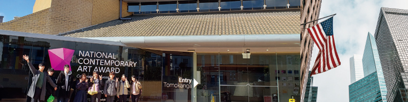 ニュージーランドの国立ワイカト大学には、学生を引率して行くことも。ワイカト美術館の前で学生と撮影しました。