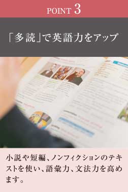 小説、ノンフィクションのテキストを使い、語彙力、文法力を高めます。