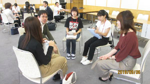 初日は企業訪問を行い、各グループに分かれ、企業から出された課題に取り組みました。課題に対して、学生一人ひとりが意見を出し合い、一生懸命取り組んでいました。
