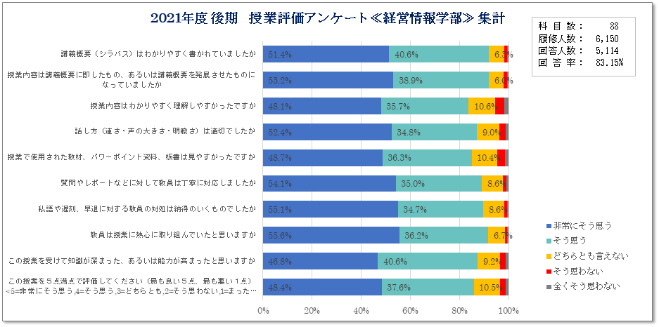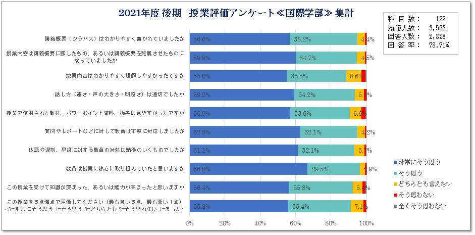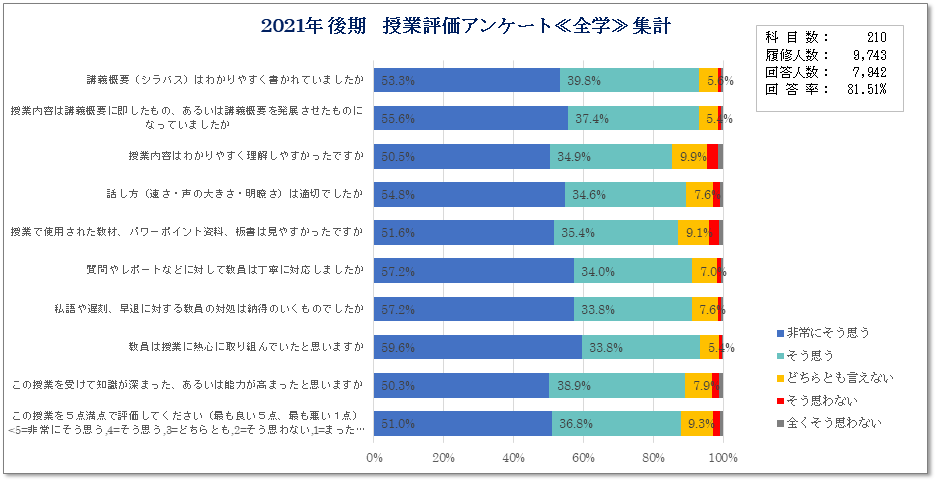 2021年度後期の「学生による授業評価アンケート」を次のように実施しました。