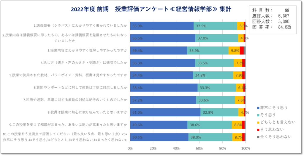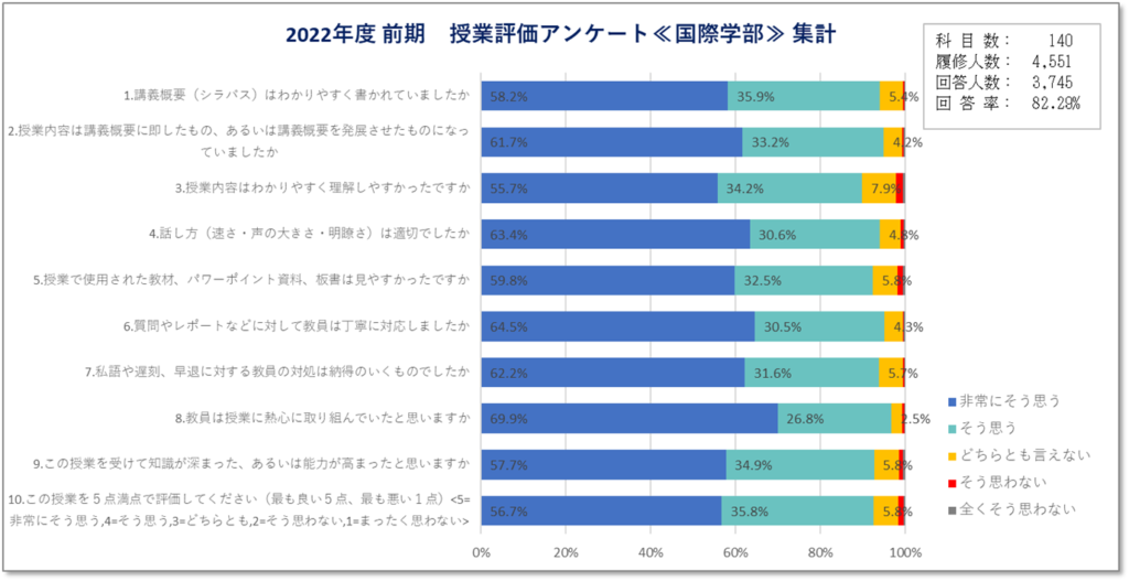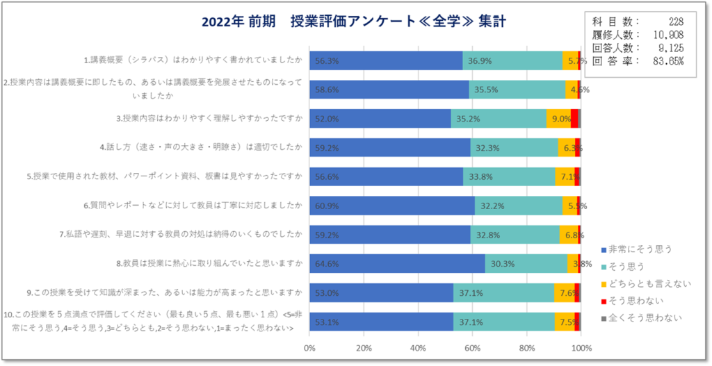 2022年度前期の「学生による授業評価アンケート」を次のように実施しました。